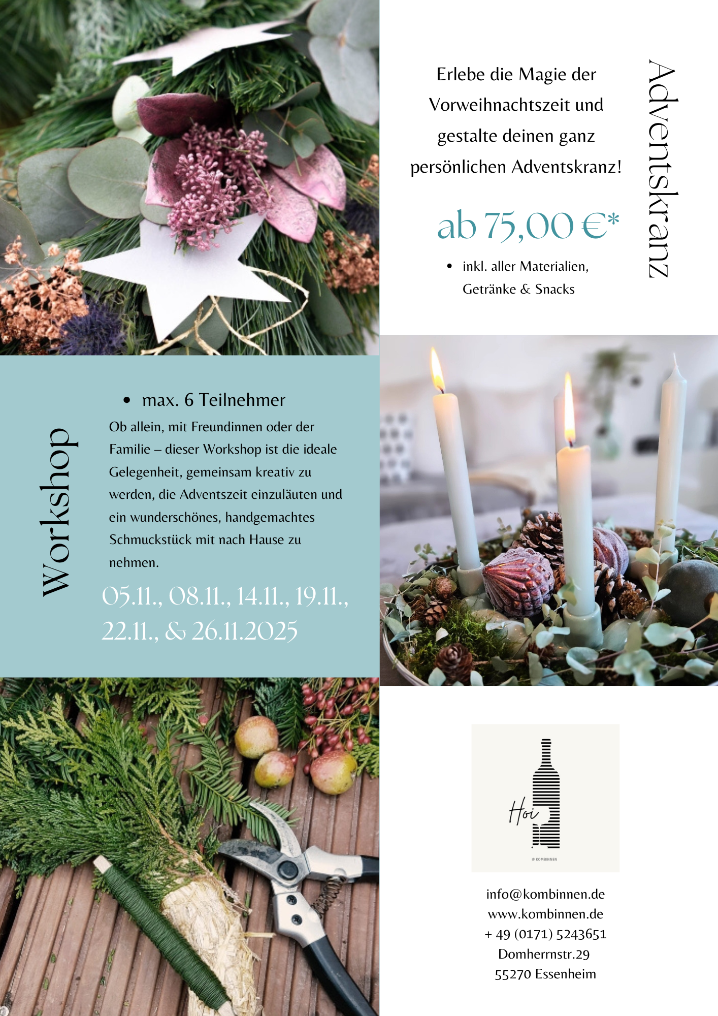 Ob allein, mit Freundinnen oder der Familie – dieser Workshop ist die ideale Gelegenheit, gemeinsam kreativ zu werden, die Adventszeit einzuläuten und ein wunderschönes, handgemachtes Schmuckstück mit nach Hause zu nehmen.